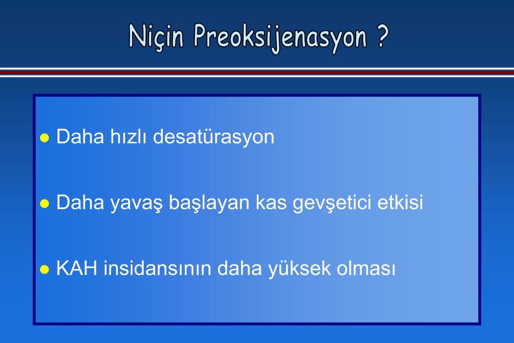 Niçin Preoksijenasyon ? • Daha hızlı desatürasyon • Daha yavaş başlayan kas gevşetici etkisi • KAH insidansının daha yüksek olması