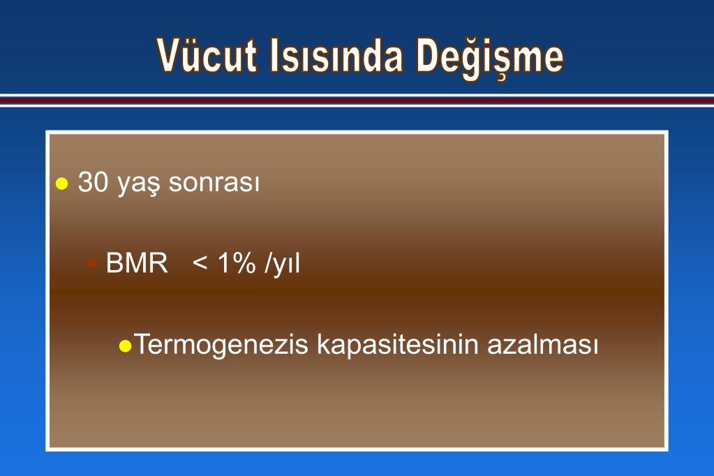 Vücut Isısında Değişme • 30 yaş sonrası • BMR < 1% /yıl • Termogenezis kapasitesinin azalması
