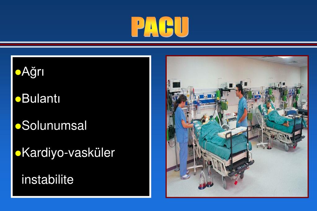 PACU • Ağrı • Bulantı • Solunumsal • Kardiyo-vasküler instabilite
