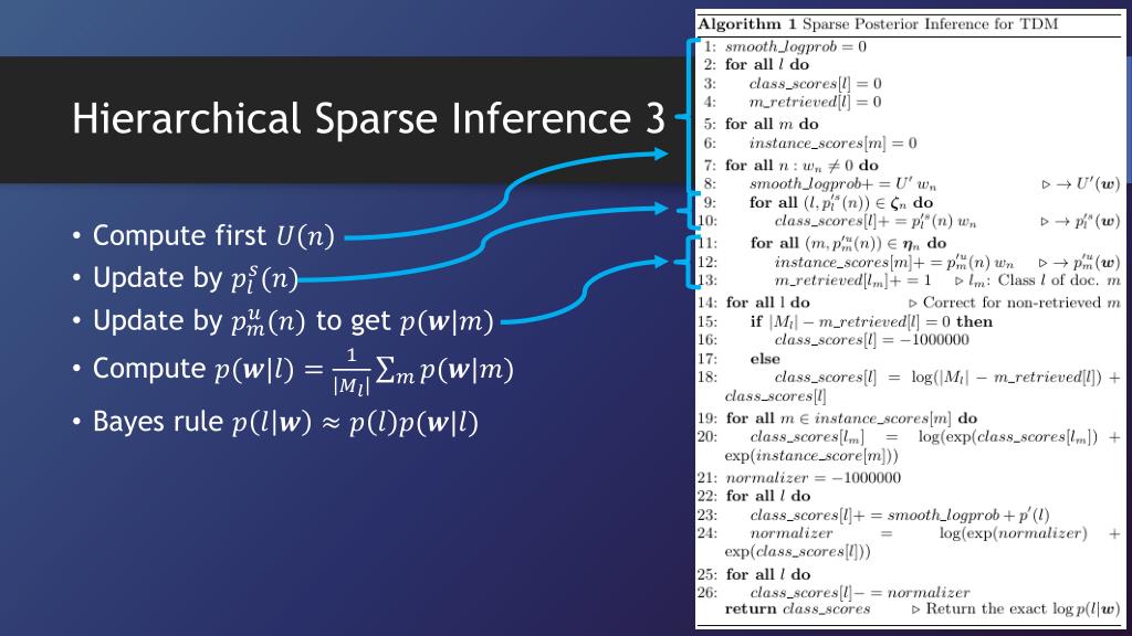Hierarchical Sparse Inference 2 • Precompile values: • decomposes: • Store and in inverted indices