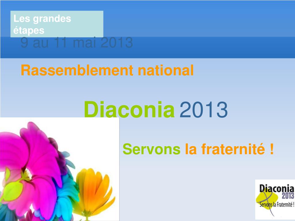 Les grandes étapes 9 au 11 mai 2013 Rassemblement national Diaconia2013 Servons la fraternité !
