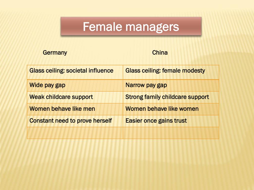 General information Guangzhou -CHINA. Cross- cultural analysis. Hofstede: Culture is the “software of the mind”. Business Practice Differences. GERMANY. CHINA. Female managers. Germany. China. Theorists’ observations. Germany. China. Hofstede. T rompenaars. Germany. China.