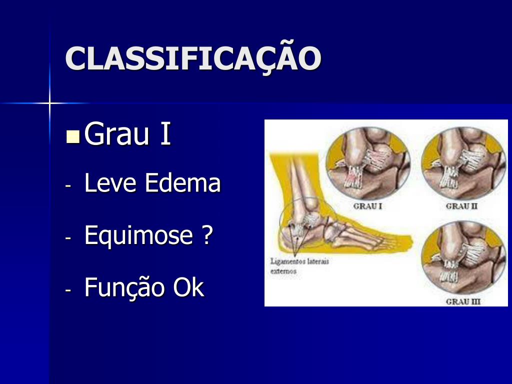 CLASSIFICAÇÃO • Grau I • Leve Edema • Equimose ? • Função Ok