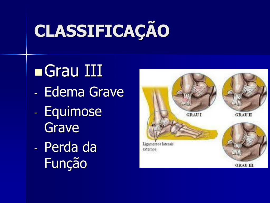 CLASSIFICAÇÃO • Grau III • Edema Grave • Equimose Grave • Perda da Função