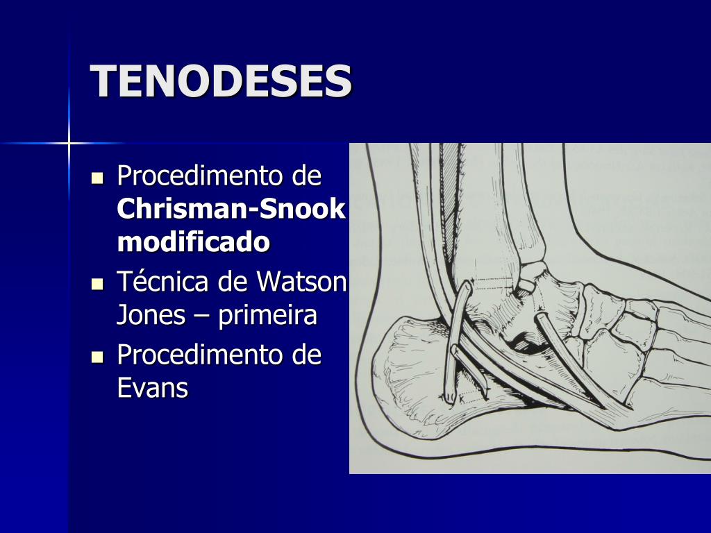TENODESES • Procedimento de Chrisman-Snook modificado • Técnica de Watson Jones – primeira • Procedimento de Evans