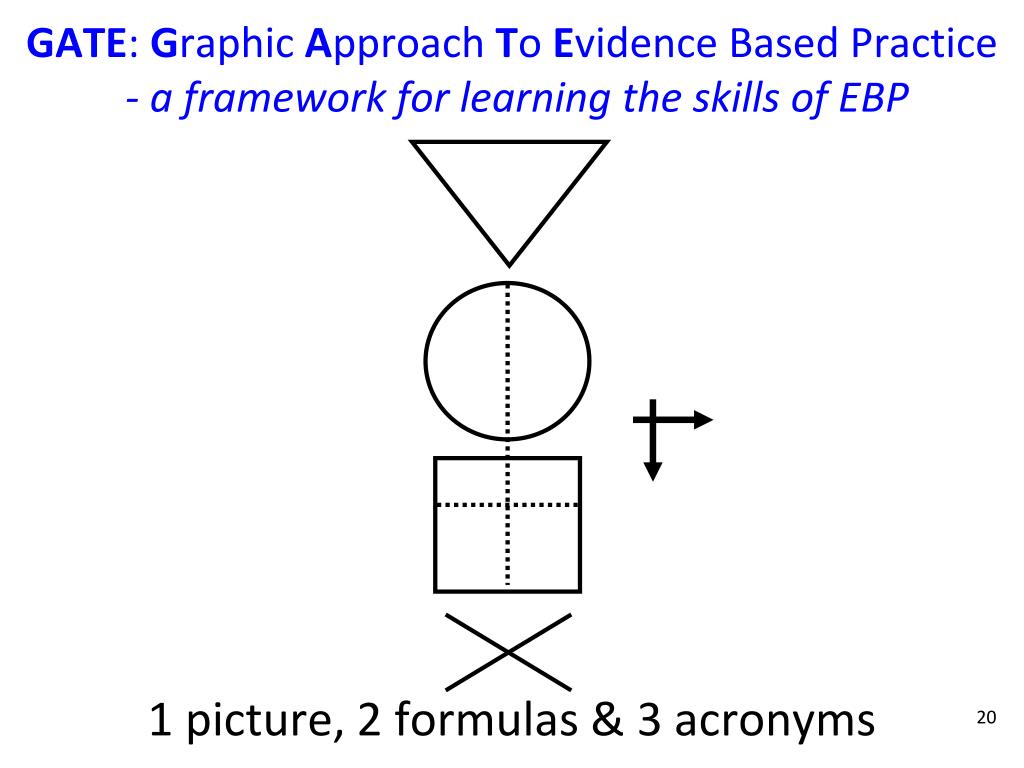 GATE: Graphic Approach To Evidence Based Practice- a framework for learning the skills of EBP 1 picture, 2 formulas & 3 acronyms