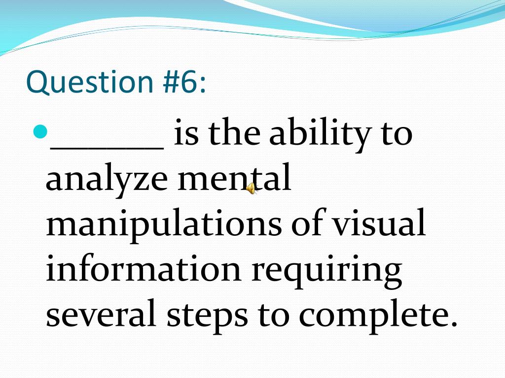 Question #6: • ______ is the ability to analyze mental manipulations of visual information requiring several steps to complete.