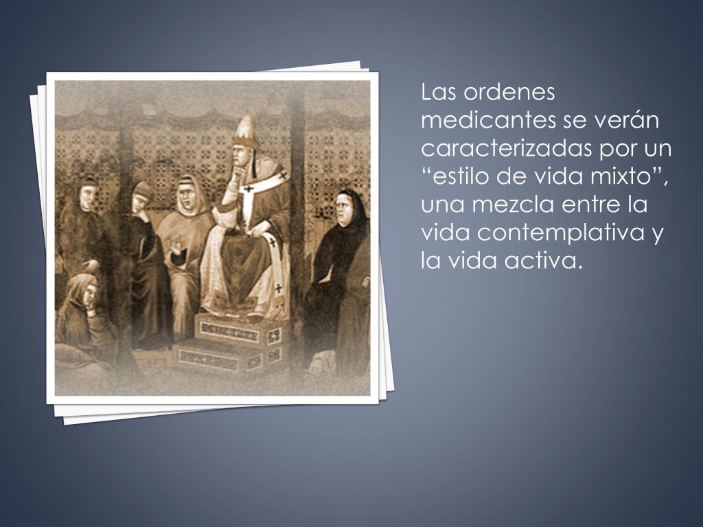 Las ordenes medicantes se verán caracterizadas por un “estilo de vida mixto”, una mezcla entre la vida contemplativa y la vida activa.