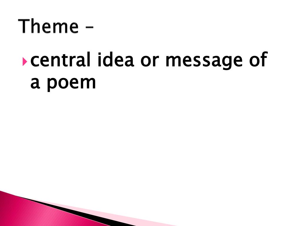 Theme – • central idea or message of a poem