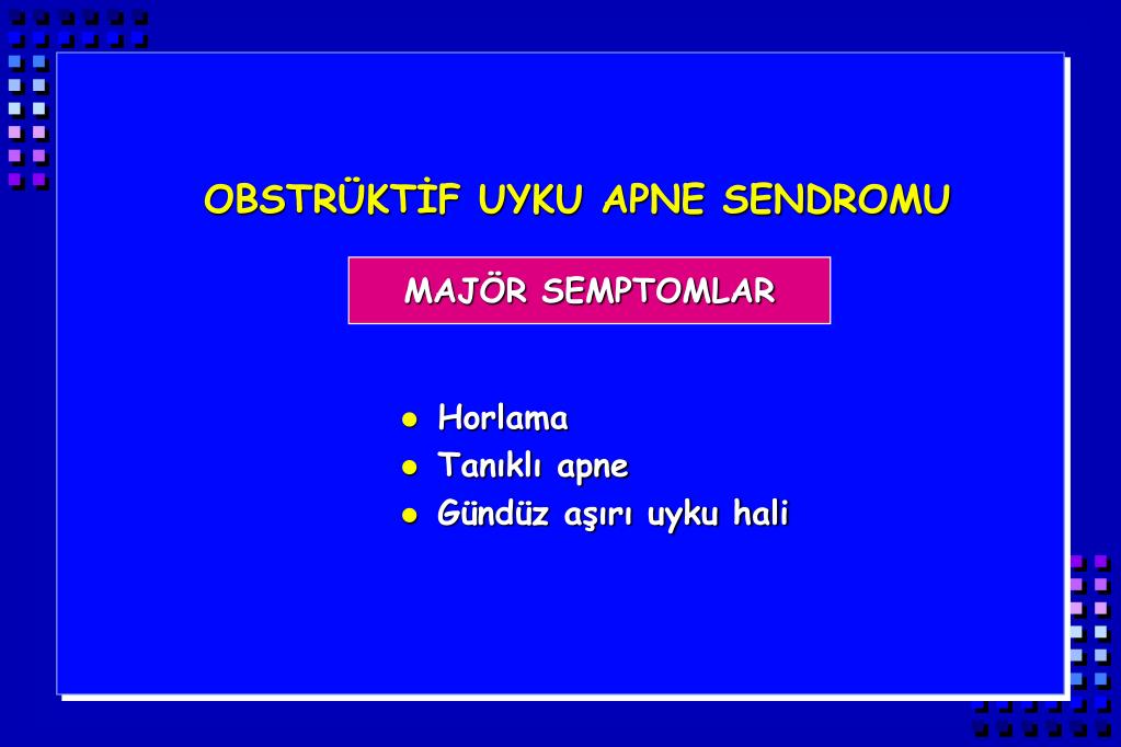 OBSTRÜKTİF UYKU APNE SENDROMU MAJÖR SEMPTOMLAR • Horlama • Tanıklı apne • Gündüz aşırı uyku hali