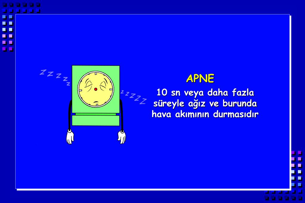 APNE 10 sn veya daha fazla süreyle ağız ve burunda hava akımının durmasıdır