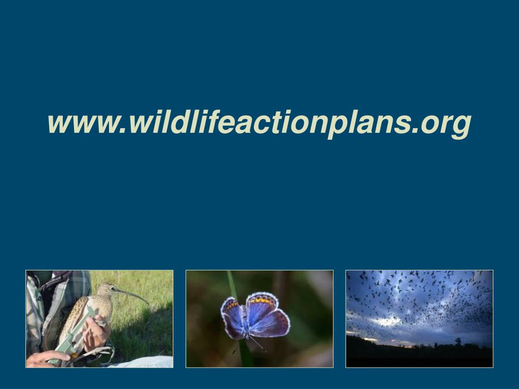 Wildlife Action Plans • Become a driving force for preventing wildlife from becoming endangered, thereby saving both wildlife and taxpayer money. • Create new conservation partnerships. • Benefit the health of wildlife and people by conserving natural areas. • Create new and greater funding for wildlife conservation.