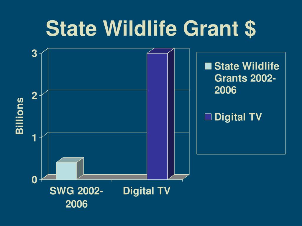 State Wildlife Grant $ Over the past five years: $475 million federal dollars + $200 million state and private dollars $675 million for wildlife conservation $X for <State>