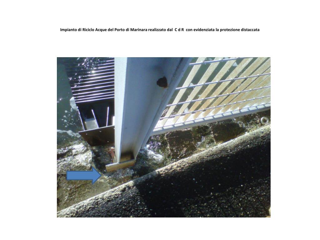 Impianto di Riciclo Acque del Porto di Marinara realizzato dal C d R con evidenziata la griglia distrutta