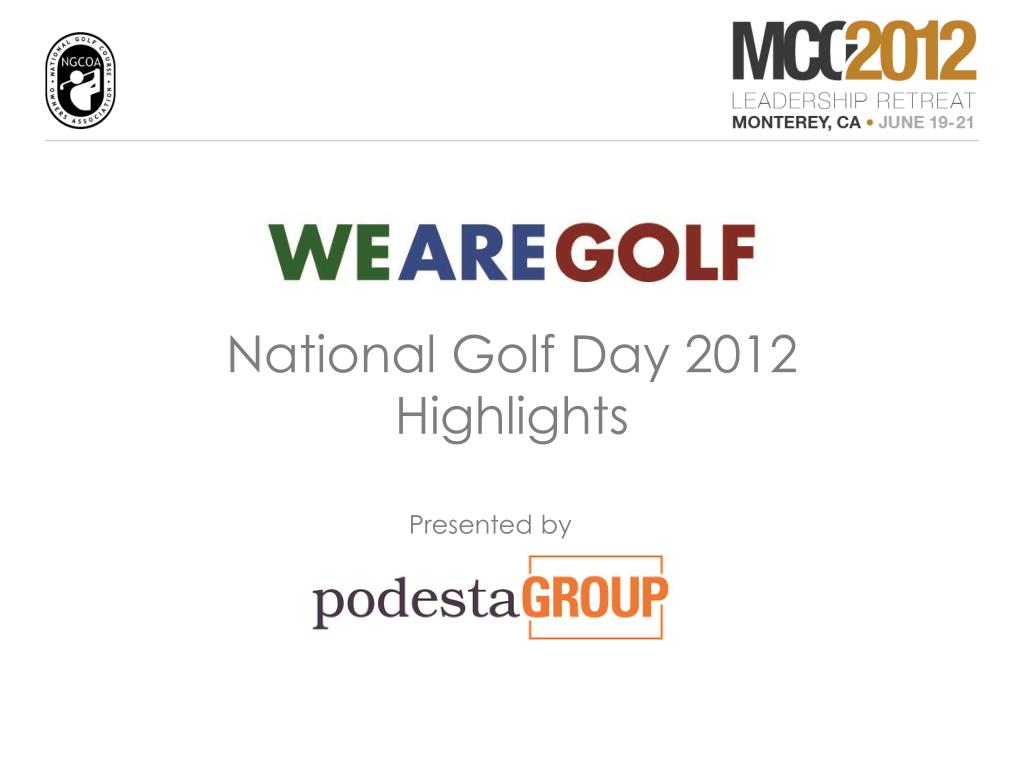 National Golf Day 2012 Highlights. Presented by. WAG: Traditional Media. Media Placements by the Numbers Estimated number of impressions : 188,216,000 Total media direct distribution: 10,000 Estimated number of online links: 75 Percentage of online publicity placements: 74%