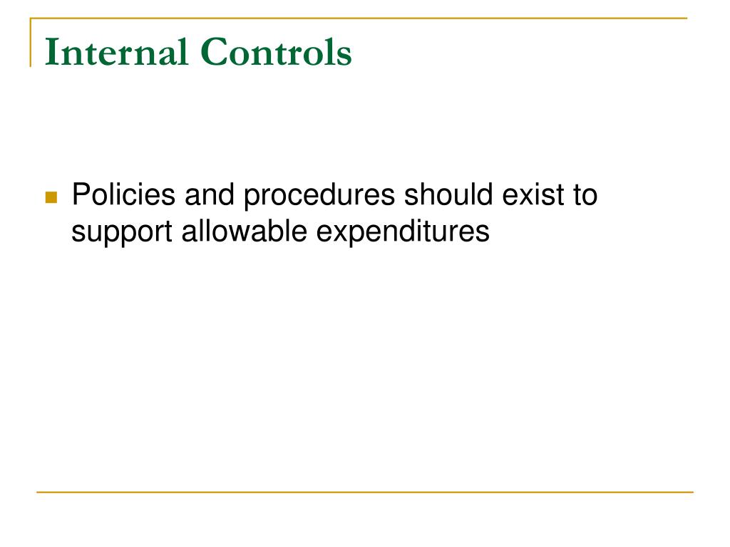 Internal Controls • Policies and procedures should exist to support allowable expenditures