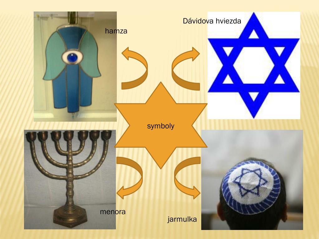 Dávidova hviezda hamza symboly menora jarmulka