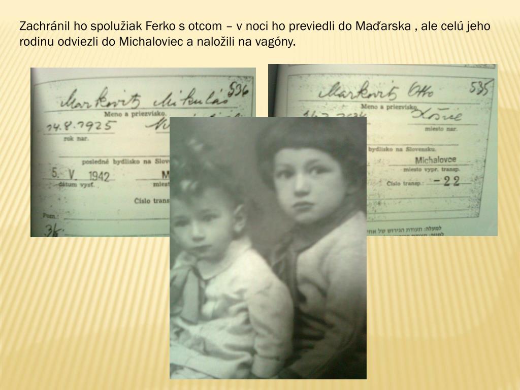 Zachránil ho spolužiak Ferko s otcom – v noci ho previedli do Maďarska , ale celú jeho rodinu odviezli do Michaloviec a naložili na vagóny.