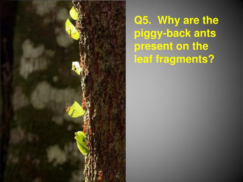 Q5. Why are the piggy-back ants present on the leaf fragments?