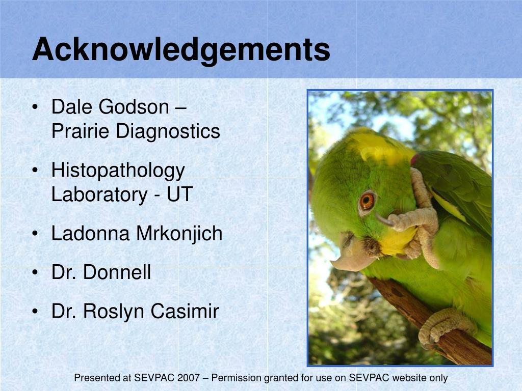 Acknowledgements • Dale Godson – Prairie Diagnostics • Histopathology Laboratory - UT • Ladonna Mrkonjich • Dr. Donnell • Dr. Roslyn Casimir