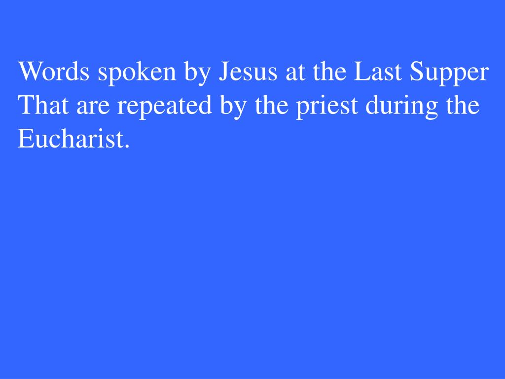 Words spoken by Jesus at the Last Supper That are repeated by the priest during the Eucharist.
