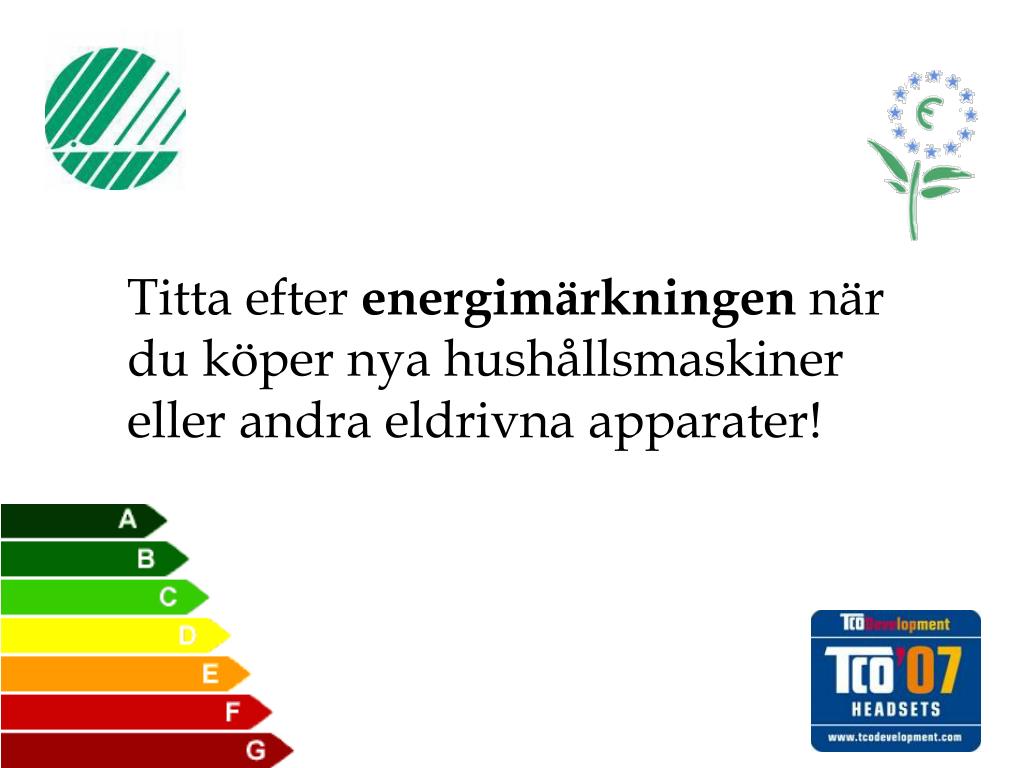 Titta efter energimärkningen när du köper nya hushållsmaskiner eller andra eldrivna apparater!