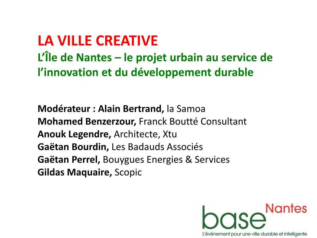 LA VILLE CREATIVE. LA VILLE CREATIVE L’Île de Nantes – le projet urbain au service de l’innovation et du développement durable. Modérateur : Alain Bertrand, la Samoa Mohamed Benzerzour , Franck Boutté Consultant Anouk Legendre, Architecte , Xtu