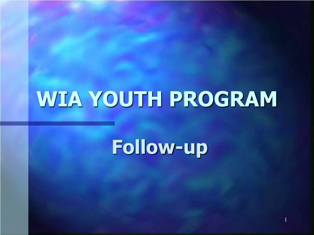 WIA YOUTH PROGRAM. Follow-up. Follow-Up. All youth participants must receive some form of follow-up services for a minimum duration of 12 months. Follow-up services may be provided beyond 12 months at the State or Local Board’s discretion.