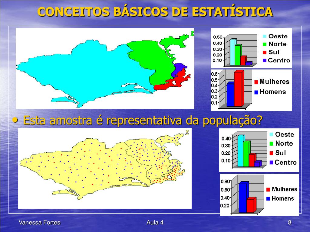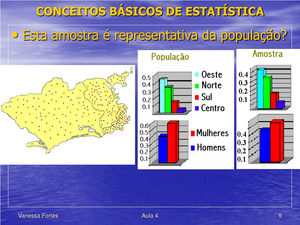 CONCEITOS BÁSICOS DE ESTATÍSTICA • Esta amostra é representativa da população? Aula 4