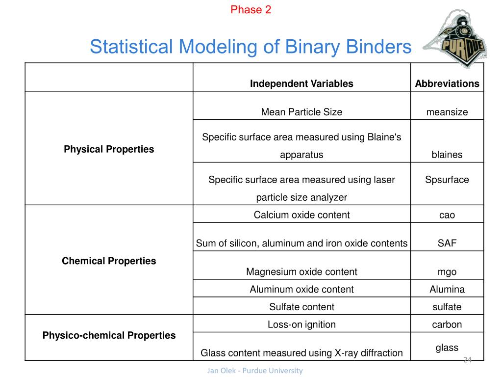Phase 2 Statistical Modeling of Binary Binders Jan Olek - Purdue University