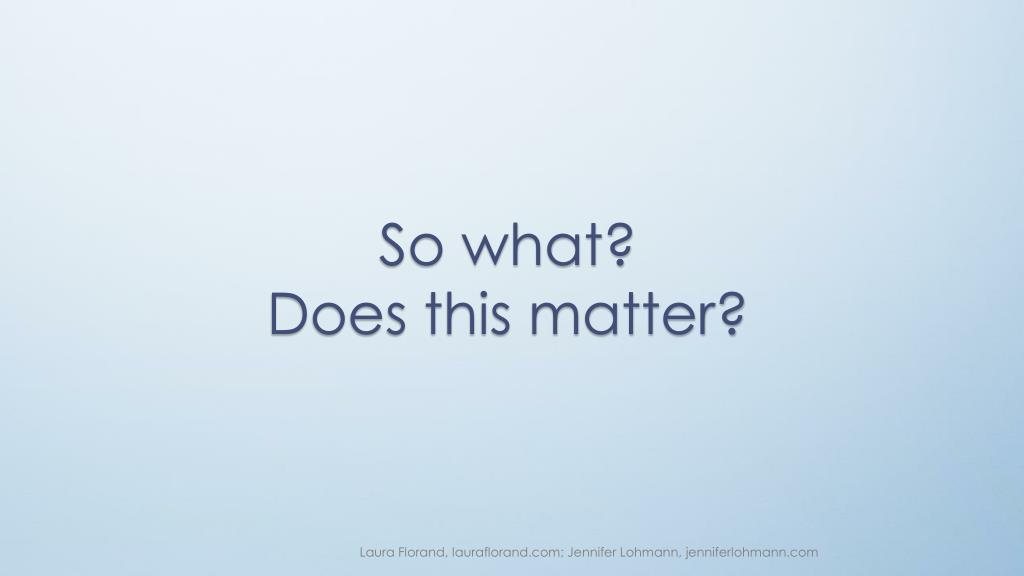 So what? Does this matter? Laura Florand, lauraflorand.com; Jennifer Lohmann, jenniferlohmann.com