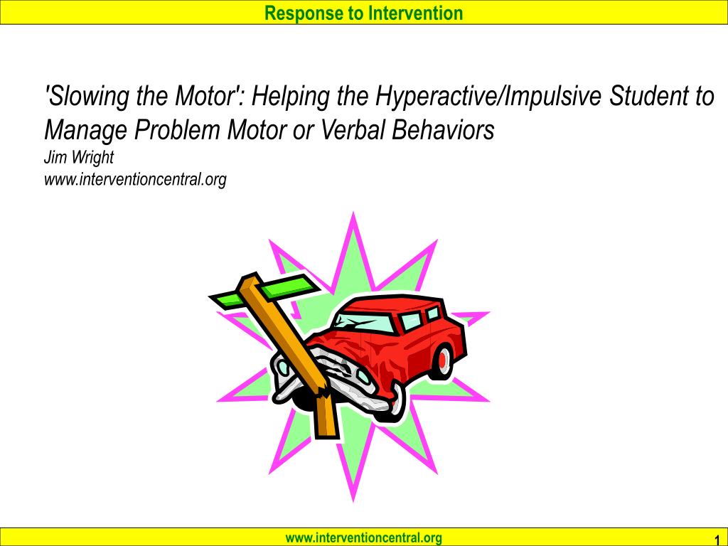 'Slowing the Motor': Helping the Hyperactive/Impulsive Student to Manage Problem Motor or Verbal BehaviorsJim Wrightwww.interventioncentral.org