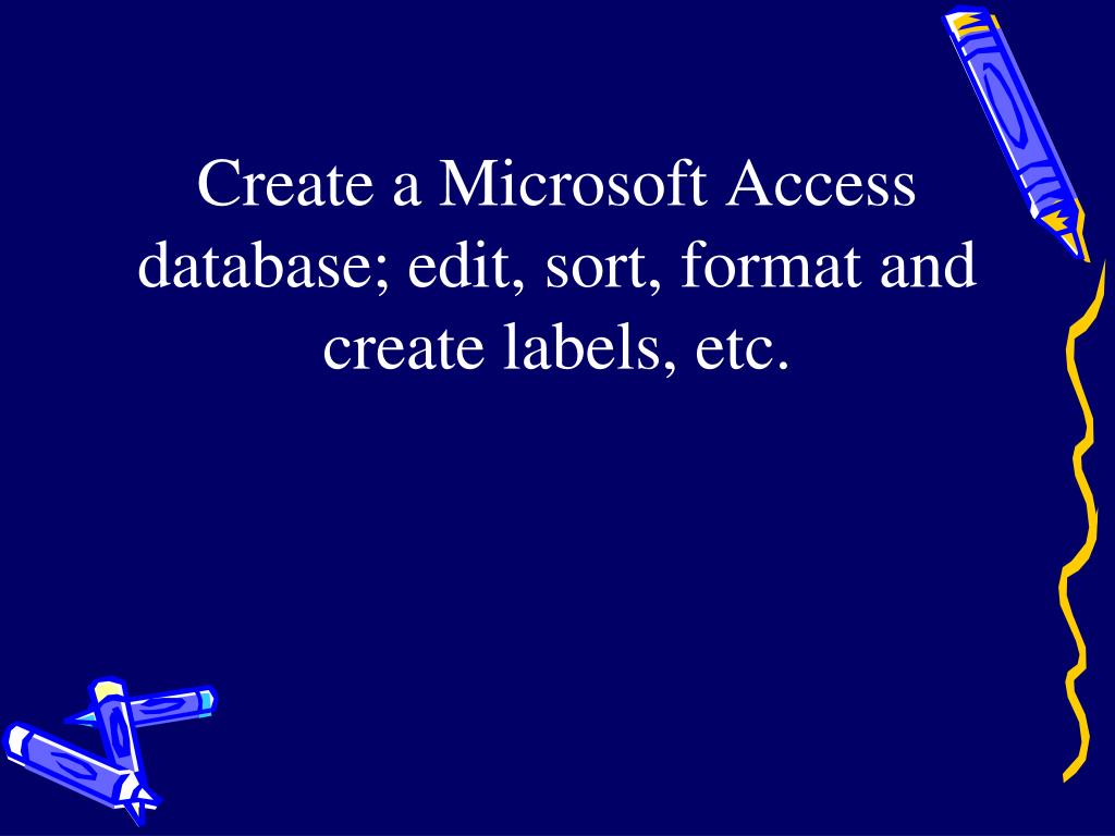 Create a Microsoft Access database; edit, sort, format and create labels, etc.
