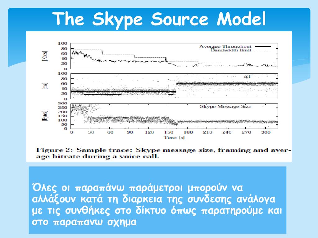 The Skype Source Model Όλες οι παραπάνω παράμετροι μπορούν να αλλάξουν κατά τη διαρκεια της συνδεσης ανάλογα με τις συνθήκες στο δίκτυο όπως παρατηρούμε και στο παραπανω σχημα