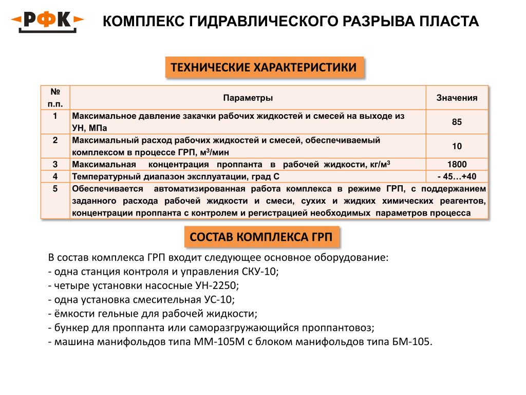 РОССИЙСКИЙ КОМПЛЕКС ГИДРАВЛИЧЕСКОГО РАЗРЫВА НЕФТЯНЫХ И ГАЗОВЫХ ПЛАСТОВ