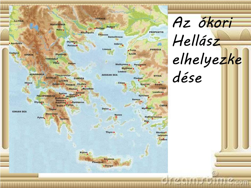 Az ókori Hellász. Étkezési szokások az ókori Hellászban. Az ókori Hellász elhelyezkedése. Az étkezések. reggeli: borba mártott kenyérből vagy péksüteményből állt ebéd: gyümölcsöt, sajtot és édes tésztaféléket ettek, hozzá bort ittak