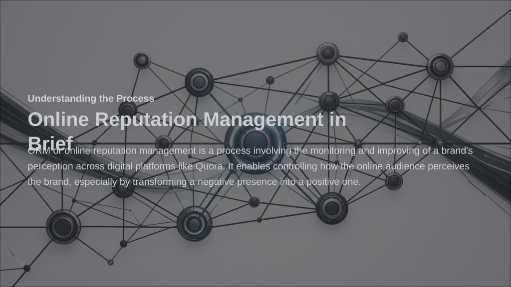 4. Understanding the Process Online Reputation Management in Brief ORM or online reputation management is a process involving the monitoring and improving of a brand's perception across digital platforms like Quora. It enables controlling how the online audience perceives the brand, especially by transforming a negative presence into a positive one.