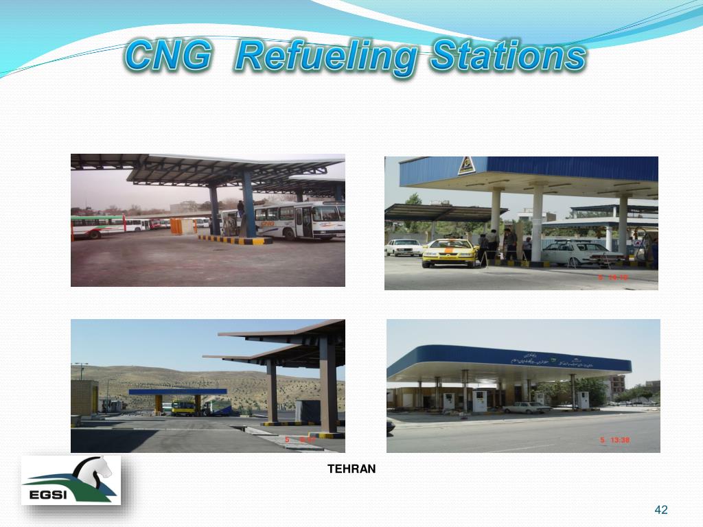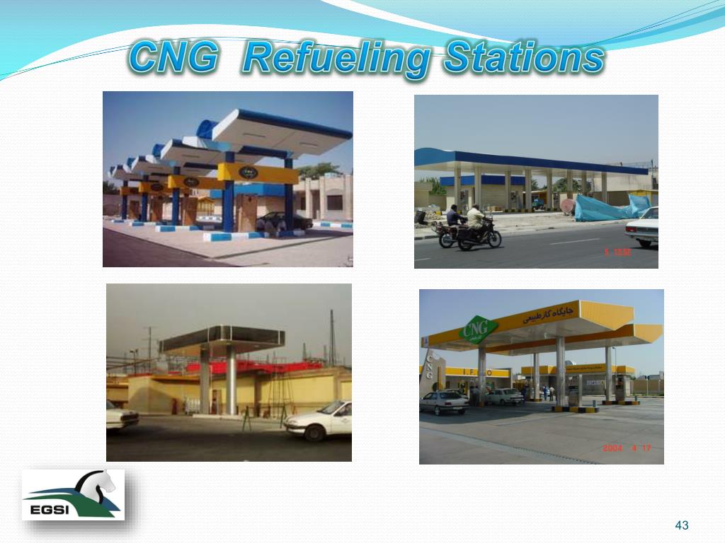 Safety & Standards • Gas quality ISO 15403- Designation of the quality of natural gas for use as compressed fuel for vehicles • CNG on –board storage cylinders ISO 11439 –High pressure cylinder for on –board storage of natural gas as fuel for automotive • CNG kit components ISO 15500,pt 1-19 Compressed Natural Gas fuel system components • Vehicles conversion For vehicle installation the ISO 15501 has been established. This is divided into two main parts, ISO 15501-1 – Safety requirements and ISO 15501-2 – Test methods. • Filling stations GE 1-118 Argentinean standard for CNG filling stations • Refueling coupling ISO FDIS 14469 – Road vehicles- compressed natural gas fuelling connectors • Retesting of CNG vehicle ISIRI 9747 - CNG fuelled vehicles – Periodic inspection & ISIRI 9426- Gas cylinders - Inspection of the cylinder installation and requalification of high pressure cylinders for the on-board storage of natural gas as a fuel for automotive vehicles