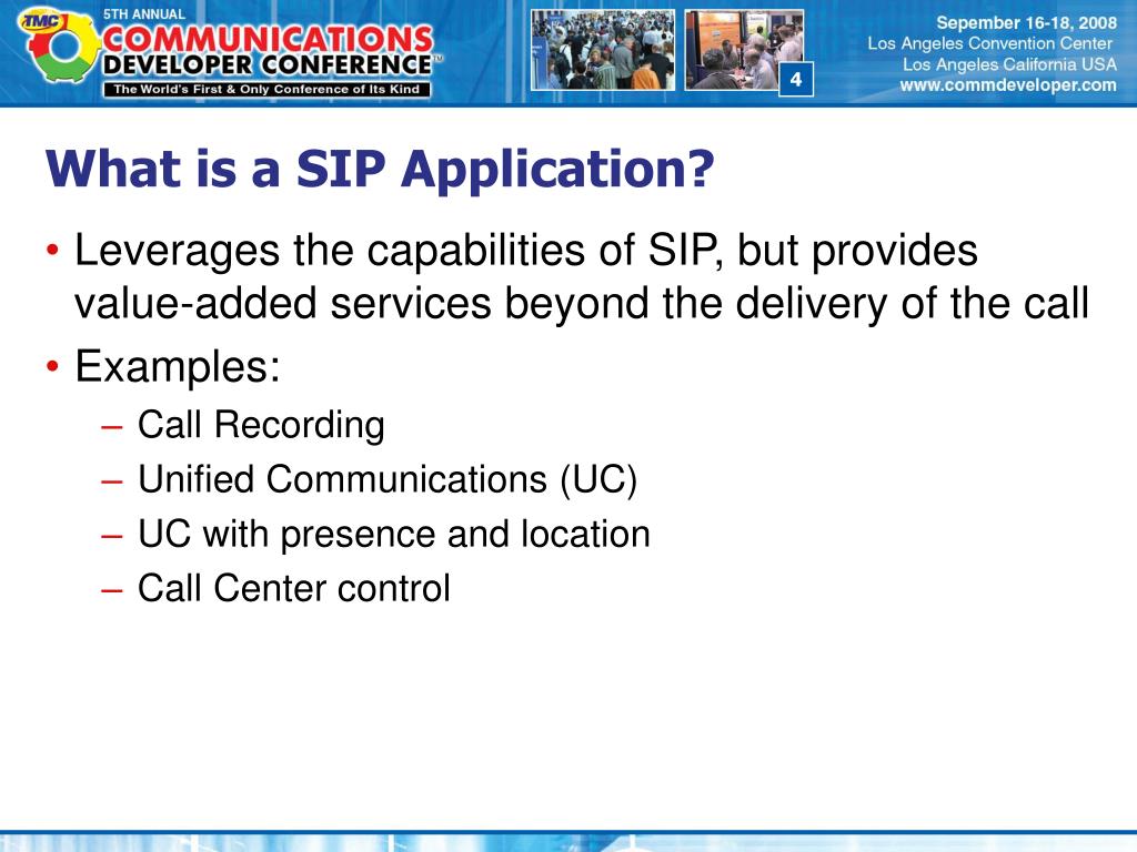 Agenda • What is a SIP Application? • Survey of standards applying to presence and location • Case study – A SIP Application that supports NG911 (SIP calls with location) • Challenges we encountered and how we resolved these