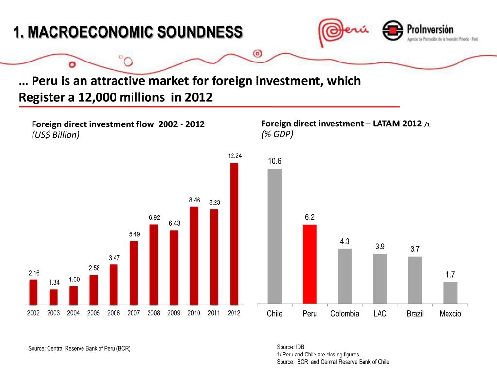 INVESTMENT OPPORTUNITIES IN PERU. Internationally acknowledged macroeconomic soundness. WHY INVEST IN PERU?. Friendly investment environment. Open trade and market access policy. 4. Attractive sectors to Invest. MACROECONOMIC SOUNDNESS.