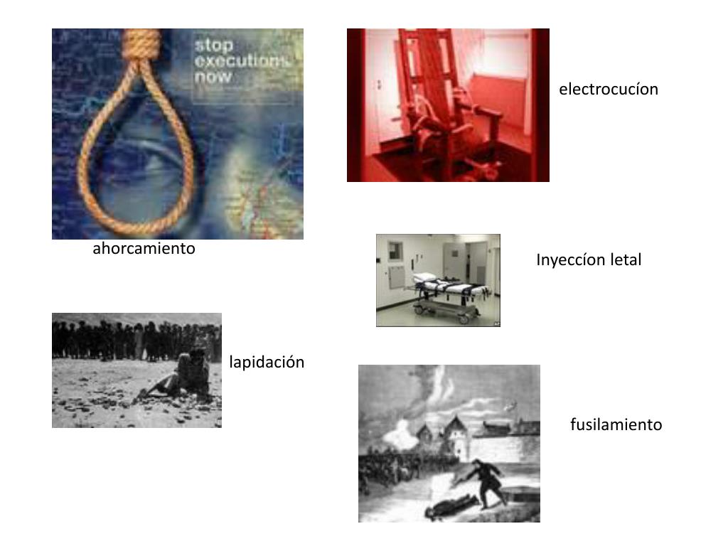 electrocucíon ahorcamiento Inyeccíonletal lapidación fusilamiento