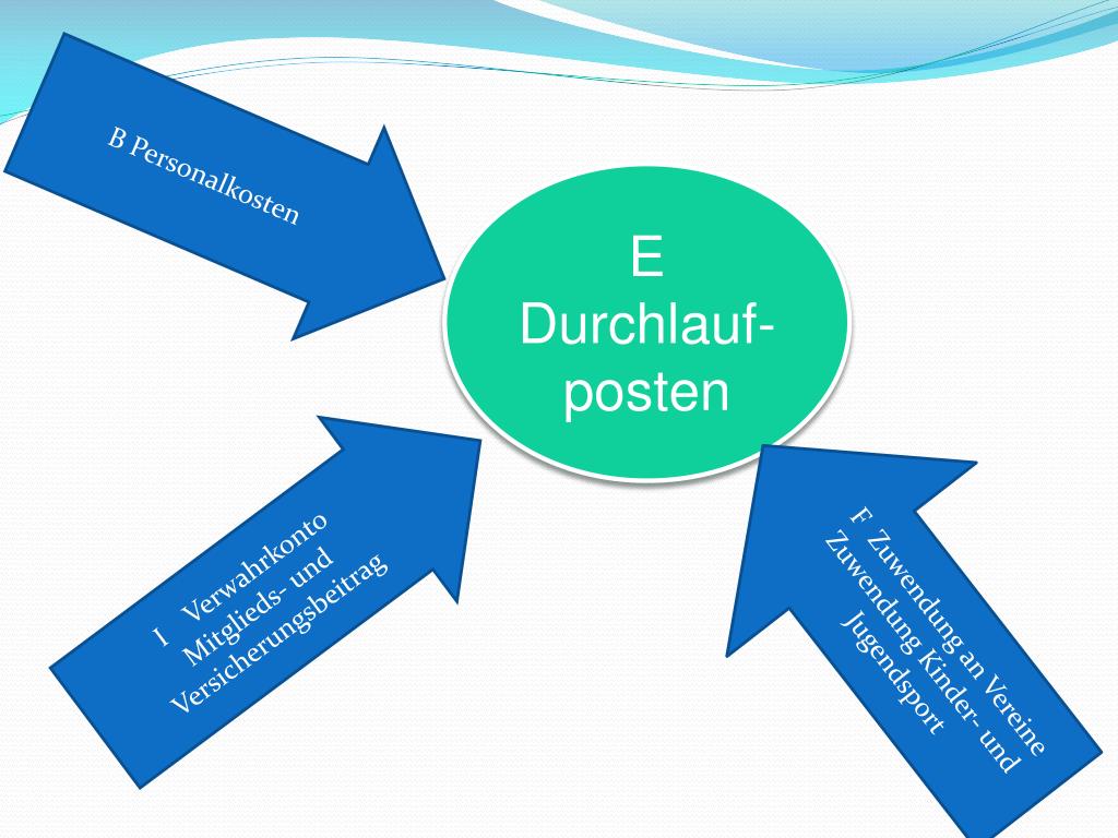 B Personalkosten EDurchlauf- posten F Zuwendung an Vereine Zuwendung Kinder- und Jugendsport I VerwahrkontoMitglieds- und Versicherungsbeitrag