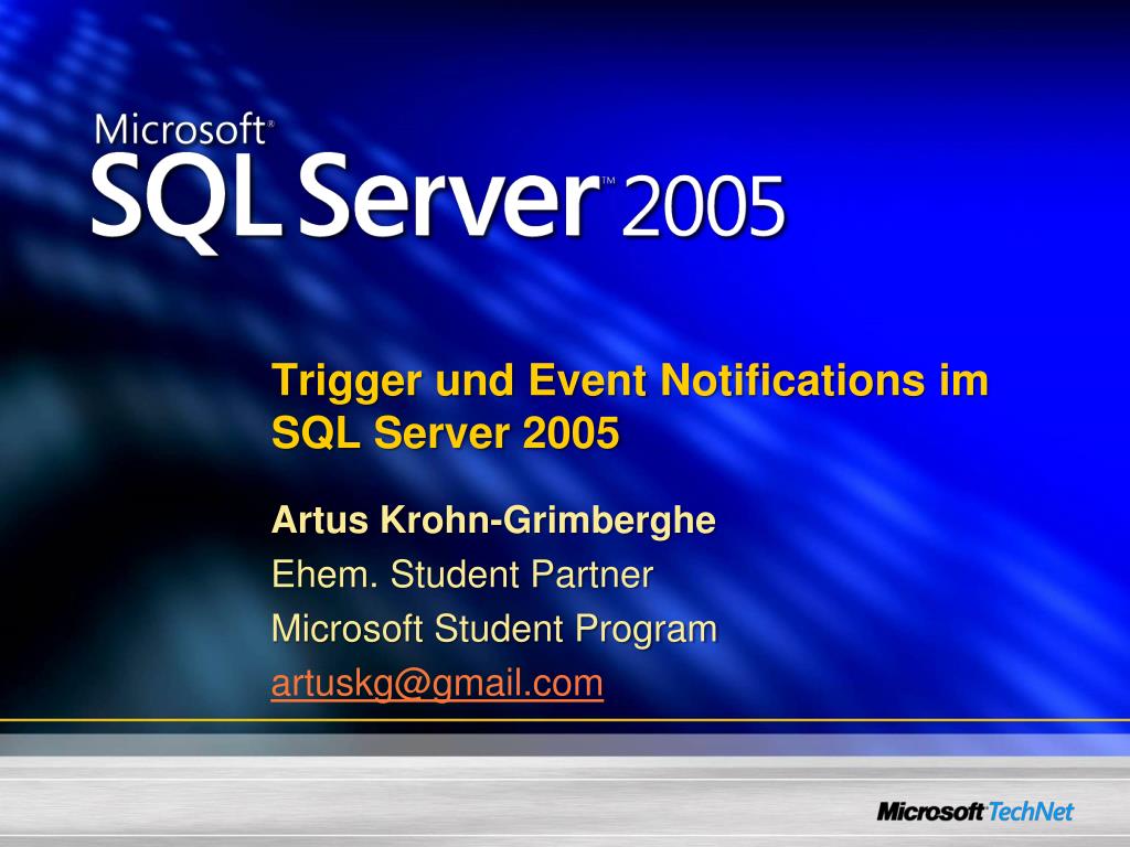 Trigger und Event Notifications imSQL Server 2005 Artus Krohn-Grimberghe Ehem. Student Partner Microsoft Student Program artuskg@gmail.com