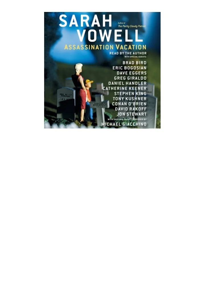 COPY LINK : https://goo-totheregister.blogspot.com/?open=B00097DWXQ | Kindle online PDF Assassination Vacation for android Sarah Vowell exposes the glorious conundrums of American history and culture with wit, probity, and an irreverent sense of humor. With Assassination Vacation, she takes us on a road trip like no other, a journey to the pit stops of American political murder and through the myriad ways they have been used for fun and profit, for political and cultural advantage. From Buffalo to Alaska, Washington to the Dry Tortugas, Vowell visits locations immortalized and influenced by the spilling of politically important blood, reporting as she goes with her trademark blend of wisecracking humor, remarkable honesty, and thought-provoking criticism. We learn about the jinx that was Robert Todd Lincoln (present at the assassinations of Presidents Lincoln, Garfield, and McKinley) and witness the politicking that went into the making of the Lincoln Memorial. The resulting narrative is much more than an entertaining and informative travelogue, it is the disturbing and fascinating story of how American death has been manipulated by popular culture, including literature, architecture, sculpture, and, the author's favorite, historical tourism. Though the themes of loss and violence are explored and we make detours to see how the Republican Party became the Republican Party, there are lighter diversions into the lives of the three presidents and their assassins, including mummies, show tunes, mean-spirited totem poles, and a 19th-century biblical sex cult.In Order of Appearance:Conan O'Brien...Robert Todd Lincoln Eric Bogosian...John Wilkes BoothStephen King...President Abraham LincolnDave Eggers...Mike Ryan Catherine Keener...Gretchen Worden Jon Stewart...President James A. GarfieldTony Kushner...John Humphrey NoyesBrad Bird...Charles Guiteau & Emma GoldmanDaniel Handler...President William McKinleyGreg Giraldo...President Theodore Roosevelt David Rakoff...Leon Czolgosz<br>