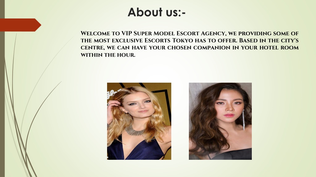 About us:- Welcome to VIP Super Model Escort Agency, we providing some of the most exclusive Escorts Tokyo has to offer. Based in the city's centre, we can have your chosen companion in your hotel room within the hour.