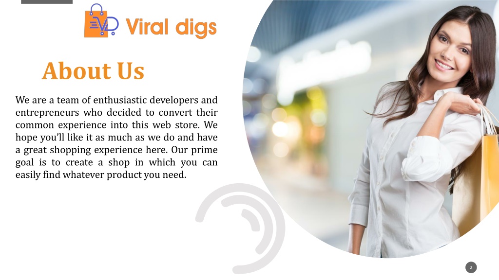 About Us We are a team of enthusiastic developers and entrepreneurs who decided to convert their common experience into this web store. We hope you’ll like it as much as we do and have a great shopping experience here. Our prime goal is to create a shop in which you can easily find whatever product you need. 2