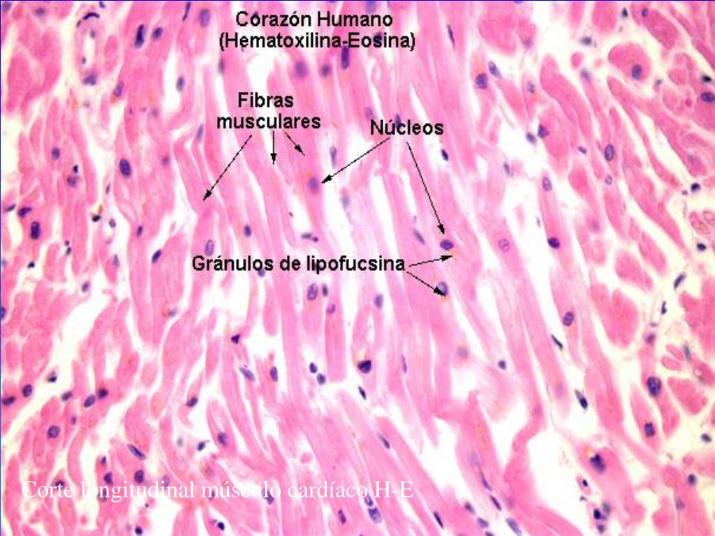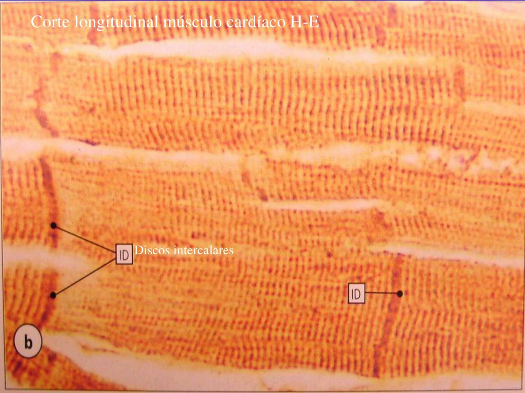 Corte longitudinal músculo cardíaco H-E Discos intercalares