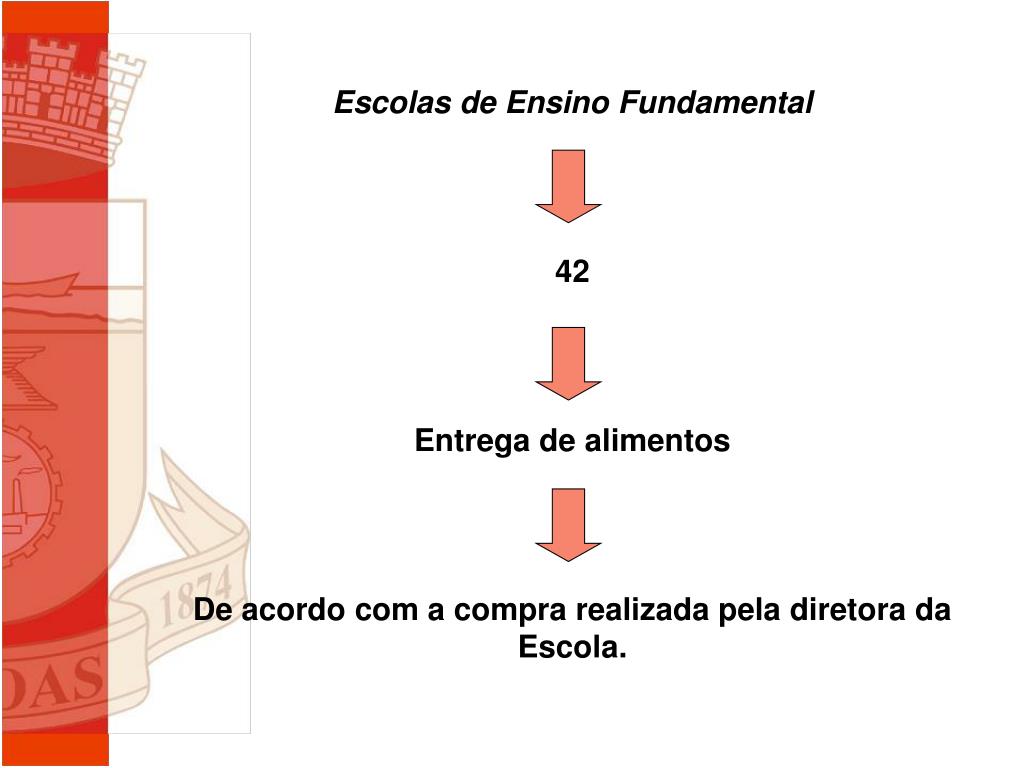 Escolas de Ensino Fundamental 42 Entrega de alimentos De acordo com a compra realizada pela diretora da Escola.