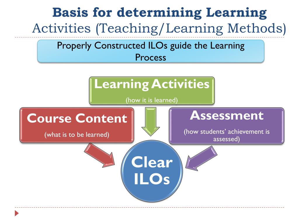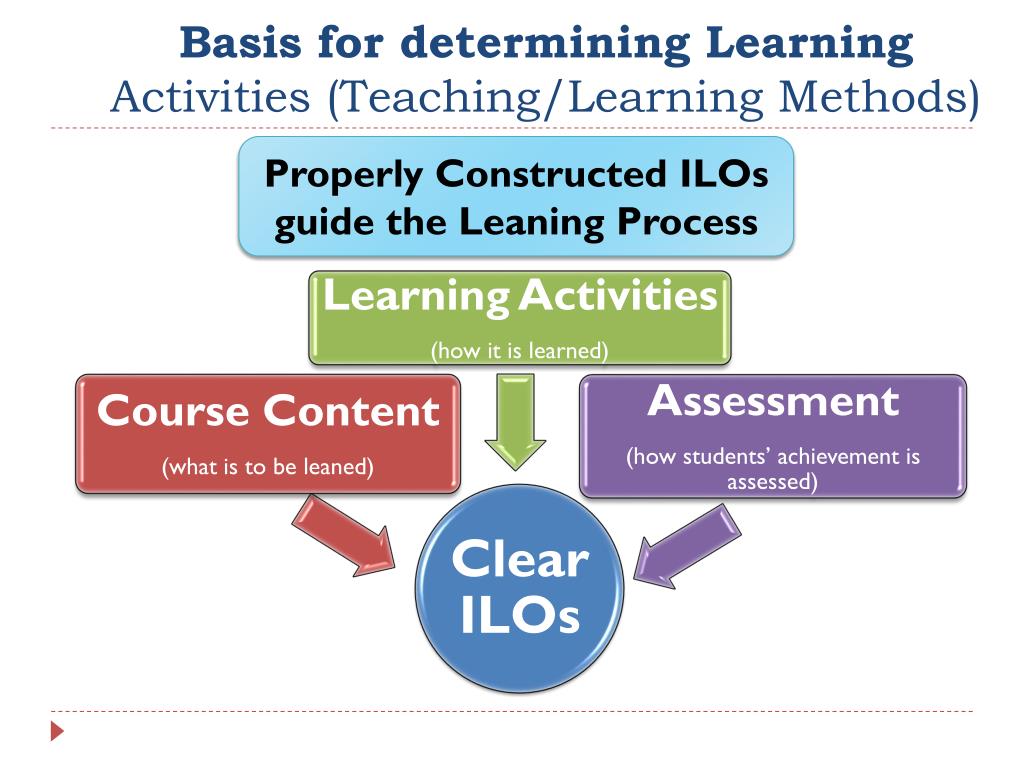 Basis for determining Learning Activities (Teaching/Learning Methods) Properly Constructed ILOs guide the Leaning Process