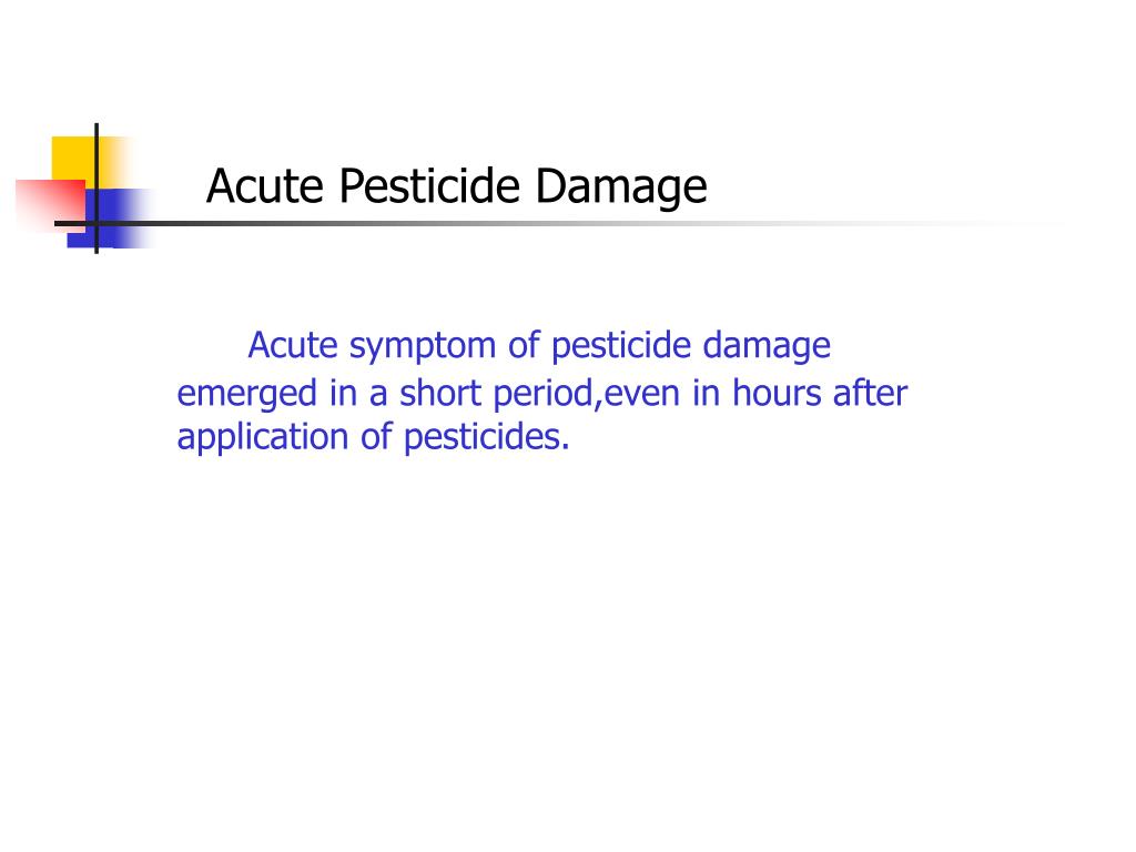 Acute Pesticide Damage Acute symptom of pesticide damage emerged in a short period,even in hours after application of pesticides.